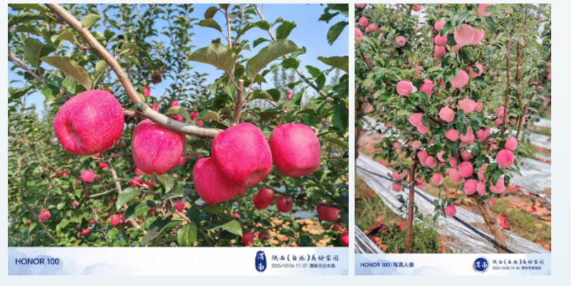在这套融合了国内首台条播式施肥机、智能割草机等前沿装备构成的全智能农机矩阵的精心守护下, 美国蜜脆、新西兰嘎啦等十余种国际早、中、晚熟品种, 与本土培育的“瑞雪”(黄绿光洁、细脆酸甜、耐储),“瑞阳”(色泽艳丽、口感佳) , “瑞香红”(香气浓郁、酸甜质优、果型端庄) , “秦脆”等和谐共生, 共同汲取着这片优生区土地的精华。