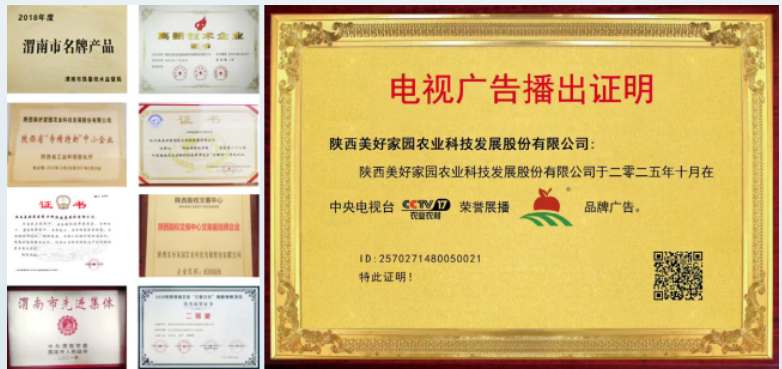 “这些年 ,累计投入了 6000 万元的心血,建成了多个合作社、家庭农场,把根扎得更深了, ”张田龙的语气里透着欣慰, “甜日子,正一步步向我们走来。”这份持续不懈的创新与裂变,为企业和品牌刻下了累累勋章:核心品牌“田浓”接连摘下“中国十佳生态果”、杨凌农高会“后稷金奖”等桂冠,并于 2025 年 9 月开始在CCTV 崭露头角;匠心培育的富硒苹果及苹果盆景系列,被陕西省列为重点新产品;企业本身更获得了省级农业产业化重点龙头企业、渭南市先进集体、省级专精特新中小企业、省级首批生态示范种植园区、扶贫先进单位等一系列沉甸甸的认可,清晰地印证着“技术深耕”与“创意突围”双轮驱动的坚实路径。